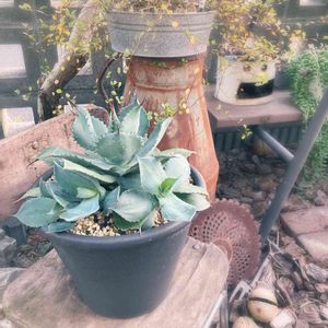 まだおチビちゃんですが💦 あき様の 🏷毎月7日はアガベの日 に勝手に参加させて頂きます😚✨ 派手な鉢に入れられてしまいました🤣