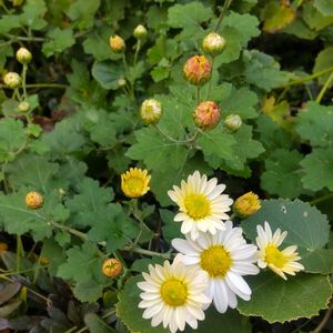 小菊 咲き始めました 少し黄色がかってる🤔 確かここは白のゾーンだったのに… カラフルになっり良かった。 🐦️さんか🍃さんからの贈り物🎁