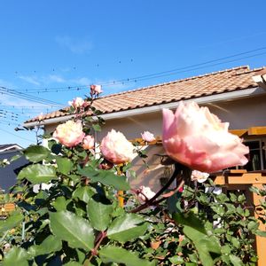 おはようございます🙋 昨日は孫の颯馬君のお宮参りでした⛩️ もうどんどん重くなって😁可愛いけどおもーい🤣 さて今朝の庭 ダフネさんが12月の空を見上げております☺️ 夏選定って大事なのねぇ🌹 今日は遅番 あと3ヶ月弱頑張ります😊