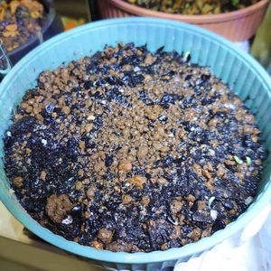 アガベ パラサナ 4日目 プラ蓋 穴無し 腰水鉢 芽がちらほらと出てきました。 9/20粒