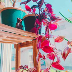 トラディスカンチア 増えに増えまくってる! この鉢から切って、他の場所に挿して、繁殖したらまた切って挿して。 玄関の前は一日中日が当たるので色が濃い♡可愛い!