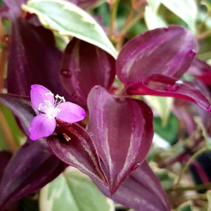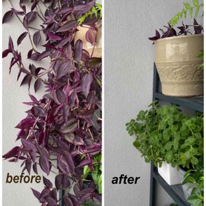 トラディスカンチア ゼブリナ ⬆️2年以上いて、やっとお花を見る事が出来ました💜ムラサキツユクサと同じ…っぽいお花♡꙼̈ ⬇️伸び放題の枝を✂️しては挿し木して更新してます♡