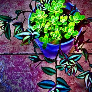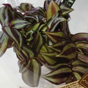 ステンドグラスみたいな✨ トラディスカンティア・ゼブリナ✨ 鉢の中はアロマティカス✨ 葉っぱが光を反射して光る感じが好き😊