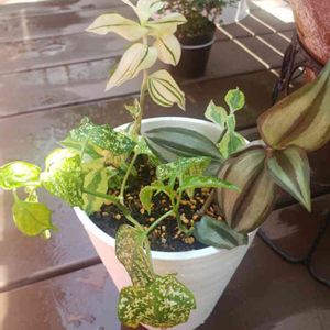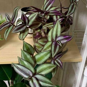 トラディスカンチアゼブリナ 全部、天を向いていたのに・・・・・・・・ ある日突然しだれていた💜❕ !!(⊃ Д)⊃≡゚ ゚⤵️⤵️⤵️🌿🌿 ろびちびちゃん産だからね‼️ あっというまにこの大きさ‼️ ベラボンに植えたんだけど・・・次どうしようかな🎵 この先は吊り鉢がいいのかな~