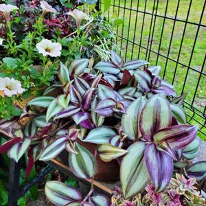 トラディスカンチアのゼブリナ お友達にお願いして分けていただいた子です。 根がしっかりしてきたら、ハンギングにするつもり❤️ パープルがとっても美しい子です😊