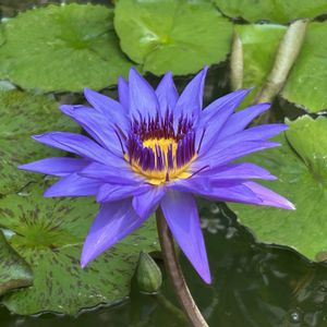 ディレクターGTムーア(N. Director GT Moore)🪷 熱帯スイレンの代表的な品種といえる非常に有名な品種です。交配はジャッジ ヒッチコックと原種のコロラータ。花弁数も13~26枚と非常に個体差が激しいのも特徴です。葉はほぼ真円で、黒に近い濃い紫のドット状の模様が僅かに入ります。 蓮や睡蓮の違いも分からず😅💦ここで初めて紫色🟣の睡蓮🪷のpic見て見たくなり神代へ初めて行き見た時にスゲー!派手で綺麗✨😍❤️←もうー8年の月日が過ぎたんですね😄♪笑