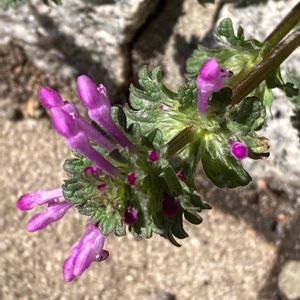 道端の花①ホトケノザ 花の向きが変なのは茎が倒れて いた為