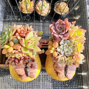 こんばんは😄 今朝は物凄い濃霧からの1日の始まりでした💦 日が登り気温も上がり残暑厳しい日だったけどお天気でしたので良かった🎵 明日また雨マークでしたけど😂 ①カンテ 初めて育ててるし、まだまだカンテとは仲良くなれてないけど元気なので良いわ😳 鉢増ししなきゃいけません🤣 ②〜⑤デカベリアの親株達 今日はこの子達を植え付けてました💨 お子を外したり汚い葉っぱ取ったりしてサイズダウンした子が多いです😝 それでも3号鉢サイズですが😅 一先ず鉢植えは終わらせたと思います😅 多分🤣 まだ抜きっぱの苗達があるし暴れてる子達の仕立て直しもしなきゃだから多肉ごとはまだ終わらないけど🥲 後少しかな〜と、やっと終わりが見えてきたように思います😂 後少し土いじりしたら配置換えが😱 頑張ろー🤣