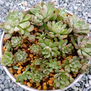 こんばんは😄 今日は朝からスッキリと晴れて風もカラッとしてやっと秋を感じれました😊 湿度がないと本当過ごしやすい😂 写真は全て今日植え替えたりしたのです😊 纏めて植えたりお一人様にしたり鉢下げしたり忙しかった😅 今日は散々な多肉ごとでした😰 放置してた今年の実生苗を植え替えて運んでる途中に躓いて落として何が何だか分からなくなって砂利の中でグチャグチャになりました😭 桃太郎の交配苗がー😭 ロメオの交配苗がー😭 砂利の中に入り込んでたから砂利を退かしてる時にバラバラに🥲 1つとかしか発芽してなかったのばかりダメになりました🥲 また次チャレンジしよう😭 プラ鉢に新しい土を入れて準備してたトレーを足が当たって倒して土まみれ😱 座って手を洗おうとシャワー出したら角度が悪くおまたに直撃でお漏らしみたいに濡れるわで散々な多肉ごとの日でした😰 今日はとてもイライラしてたから何もかもが上手くいかなくて散々でした😅