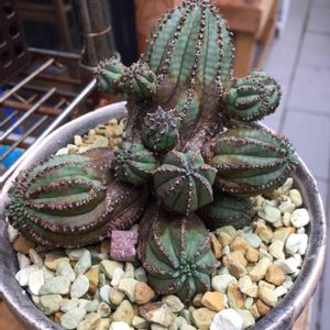 ユーフォルビア ベースボールプランツ って書いてあったのですが、調べたらオベサブロウ?☘️ まんまるで可愛かったのに、いつのまにか ニョロニョロと😓 なぜ? サボテン小屋、南側の窓辺日当たり良好なのにな😓
