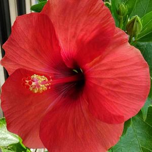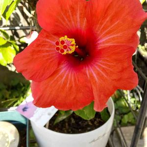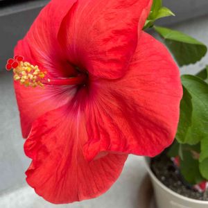 遂に咲いてくれた(今朝) ハイビスカス 「アドニスオレンジ」🧡♥️ 見切り品をお迎えして3週間以上 当初980円の物がヨガの帰りに|ω・` )チラットお隣の園芸店覗いたら⤵⤵258円にお値下げしていて お花は無し❌ 持ち帰り植え替えて、液肥も💧 ダメ元で咲かなかったら来年に掛けようとお迎えしたのですが… 3週間も掛けて蕾が膨らみ 咲いてみたら 濃いめのオレンジでした♡♡ 直径計ったら約15cm大きいです♥️ 他の2つの蕾が咲かずに落ちた⤵⤵のでしょんぼりしてた所 \(๑´ω`๑)/やったぁあ😆♥ まずは1輪でも開花♥️🧡 嬉しいです(o^^o)