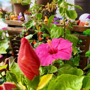 わたしの癒し、ベランダのハイビスカスたちとおチビ息子たち😁 中学生の双子もまだまだ可愛いですが!笑