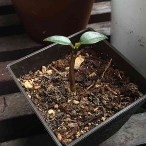 プルメリアさん、本葉が茶色くなったので 終わった…😭と思ったら 生きてた❗️ そーいやプルメリアの葉芽は 赤っぽいってか茶色っぽかったんだった 茎も茶色がかってたから 腐ったかと思った 触ったら超プリプリで元気そうだった😃✨