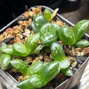 実生苗 やはり色が薄くになってしまいますね もう少しピンク強いのですが……😔 2枚目 マウガニーの実生 蒔いて10ヶ月位です😊 色んな形していますね🙂 自力で脱皮出来ていないのもいますね🙂