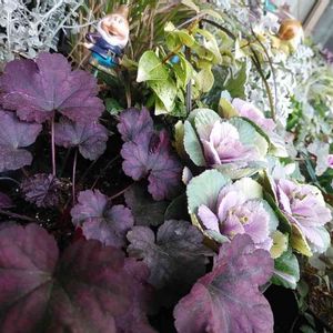 一昨日作ってUPした寄せ植え、 色が飛んでたから再チャレンジ! 大して変わらないかも!? でもビオラが一度枯れないうちに、 センニチコウが元気🎵なうちに撮影! ヒューケラのドルチェシリーズはブラックタルト! 新しい植物の名前🌼🌿って可愛くて💕ズルい! 名前に負けて買いたくなる😣