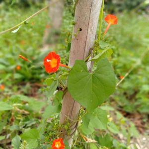 おはようございます🍀 今日は午後から大荒れ☔の天気予報なので朝から一部の花を移動してました💦 picは「マルバルコウ」 サツマイモの仲間 一見、アサガオ(ヒルガオ)と勘違いしそうな双葉🌱花も小ぶりですが、オレンジ色で似てます 凄い密で引き締めあって生えてました。