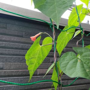 グリーンカーテンへの野望③ こぼれ種から始まってしまったマルバルコウの花が咲き始めました。 フライングスタートに敬意を表し(モノは言い様)種を埋めずにばらまいてみました。 上手くいくかなー☺️