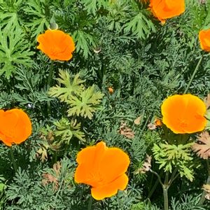 『花菱草』(カルフォルニアポピー) 去年の秋に種蒔きをして冬に定植したのが咲き揃ってきました。 ビタミンカラーの花が風に揺れる様がとても好み🟡🟠 花の大きさが5〜7cmあるので、なかなかに見応えがあります👏 種を採ってまた来年も咲かせたいな〜