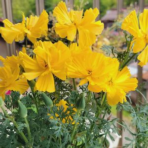 こんにちは😊蒸し暑さ💦 身体が_( _´ω`)_だるい 花菱草(カルホルニアポピー) °・*:.。.☆💛🍃💛🍃💛🍃💛🍃 零れ種から出た🌱苗を貰って植えましたぁー花菱草だと…🤔 ビタミンカラー💛🍃 元気貰ってがんばれ\(*⌒0⌒)♪ 🏷日曜ビタミンカラー♪ 参加しますー🙇🏻♀️