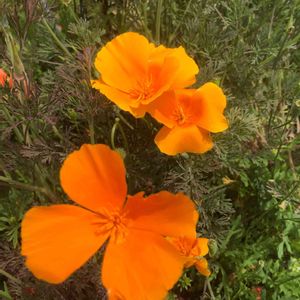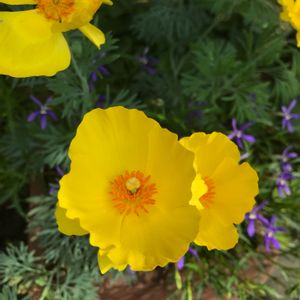 畑のこぼれ種からのハナビシソウが満開です🌼 遠くからもよく目立つ色ですね😊