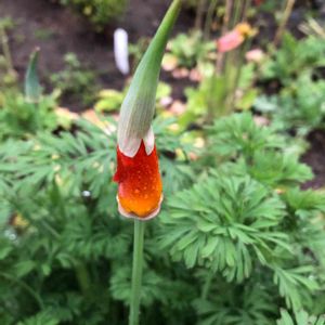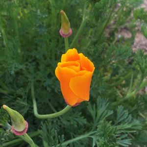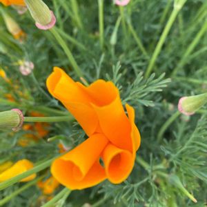 花菱草 夕方には閉じてしまいますが このつぼみの姿 結構好き🧡🧡🧡 菱形の花びら 夕方は綺麗にたたまれています 開く前のつぼみは とんがり帽子 これもまたかわいい🧡🧡🧡