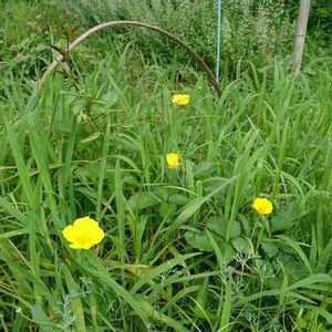 うつ病になってしまうんじゃ?くらい庭も畑も草だらけ〜TT 畑で草に埋もれてる花菱草(カリフォルニアポピー) 今頃まで咲いてるの珍しい ちっさいけどね とりあえず草刈りしないと!