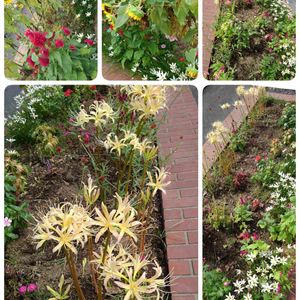 ひまわりにサヨナラして、秋の花壇になりました 白い彼岸花が大好きです💕