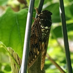 油蝉 羽化したようです なぜに、こんな所で…🤔 GG〜と鳴く声を聞いていたら…たしかに、揚げ物…食べたくなるような…🤔 (コンビニのレジ横は見ないように🫣ww)