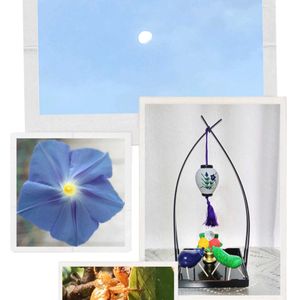今日からお盆です🥒🍆🔥 しばらく賑やかになりそうです👻 お盆飾り 名残りの寝待月🌖、ヘブンリーブルーの一番花、蝉の抜け殻(アブラゼミ)