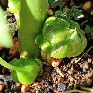 こちらは、毎日🌞日照り状態で…水を撒いても撒いても、すぐにカラカラ💦 大事に育てた植物🪴たちも、ずいぶん枯れてしまいました😭 そんな中、ホワイトトライアンファターの根元に小さな小さな球根みたいなものが…😳 この暑さの中、頑張っている子たちもいるのね…🥲 2枚目はアダンソンハエトリ🕷️ いつもはスルーしているのですが、今日はやたら華麗なダンス🕺を披露していたので思わず魅入ってしまいました🤭 朝の蜘蛛🕷️は縁起が良いと母が良く言っていました😌 家の中で「あっ!10円!😳」くらいの小さな幸せかもしれませんが、ちょっとだけおすそ分け🤭 🕷️苦手な方はスルーして下さいね🙂↕️(でもタカアシグモ🕷️よりましかも😅 アレは怖いよね〜😱💦)