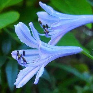 まだ朝日が届かない時刻 ひんやりした空気が心地良く 淡い青色の小さなアガパンサスが涼しげに咲いてます 朝日が昇ってくると その光のパワーが広がり始めました