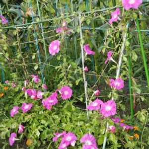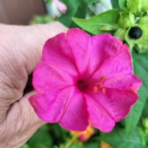 ①白粉花 赤紫×黄色 蛍光色 ②白粉花 赤紫×黄色 ③西洋朝顔 ④西洋朝顔 ⑤孫が学校からもらって来た 大輪朝顔