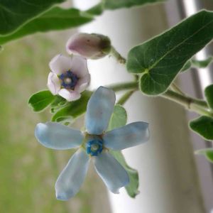 3年目のオキシペタラムくん。今年は高さのあるラティスを用意したので思う存分伸びるがいいさ!