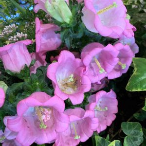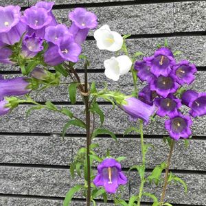 今日のお花 カンパニュラ ツリガネソウと呼んでいます 大きくなり過ぎて切った時にギボウシの葉っぱと一緒に生けました(*˙˘˙*)ஐ 6月末のpicです