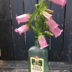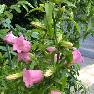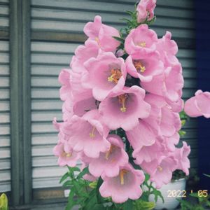 おはようございます☁☔ やっと咲いた💗つりがね草💗 去年お友達が可愛く咲かせてたので 私も種蒔きして半年かけて育ててきました😌 上から咲くんですね🔔🔔🔔