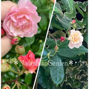 ピーチさんと野薔薇 ERピーチブロッサム 棘なし野薔薇 近くにいると二つのバラの 素晴らしい香り╰(*´︶`*)╯♡