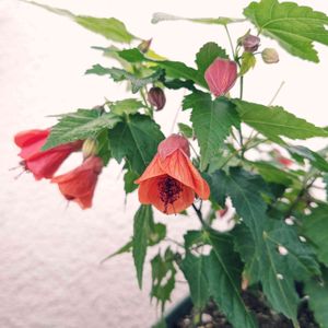 【教えて下さい】 アブチロンの花が咲きだしてるんですが、どうしても葉の影になっちゃって花が見えません… 皆さんどうしているのでしょうか? ご存知の方いらっしゃったら教えてください💦