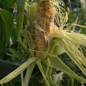 とうもろこしの収穫はもう少しかな😋と様子をみるとやはりやられていました😅 何の防護策も取ってないので仕方ないのですがタヌキ?ハクビシン? もう少し置いときたかったけど5本だけ収穫😋 ローゼルは順調に育っています🌱