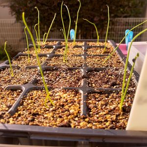 初めての玉葱種蒔き「ソニック」発芽 9/15播種 昨晩発芽に気付きました もう3〜4年前から 育てたい〜育てたい〜と 思っていた玉葱 (悩む時間、取りかかる時間が 人より長い😓) 苗からの方がハードルは低そうですが 種蒔き好きとしては 失敗してもいいから 種蒔きから 発芽しただけでもハッピー😍 地植えで植える場所がないので プランターで育ててみます 育苗中気づいた点がありましたら 教えてください🙇