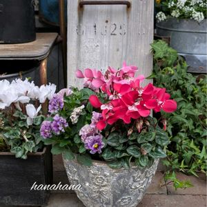 3枚目🎞️ お友達がおすすめしてくれたパンジー「パスフリ」 苗がとてもしっかりしていて、お花も可愛くて、長く楽しめそうな予感しかありません👍✨ 一度迷ってやめた「ジックス」は、諦めきれず数日後お迎えしました😂 とても華やかな寄せ植えになりました❤🩷💜