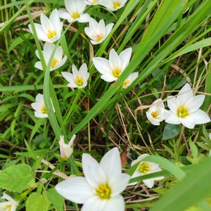 草だらけの花壇で、タマスダレのお花が沢山咲いています❇️🤍✨❇️ 草を退けて写真撮りました😂