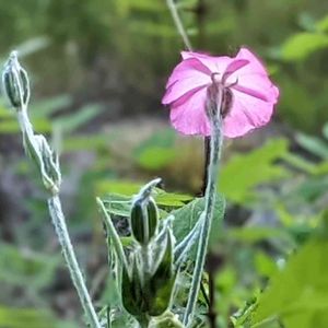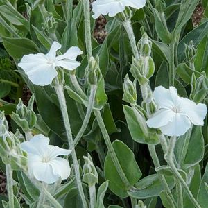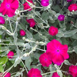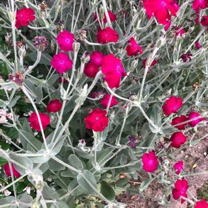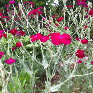 駐車場横に咲くスイセンノウです。白い毛が生えたフェルトの葉をしてます。 別名 リクリス・コロナリア