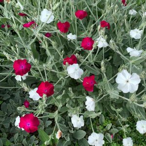 スイセンノウ(酔仙翁) 両方入り混じっていいバランス💕 まるで紅白の源平合戦ですね🤗 何故かこの名前をすぐ忘れてしまうんです😅 ナデシコ科センノウ属(マンテマ属)