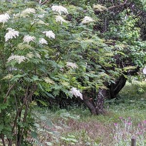 庭ナナカマドと下のフランネル草の共演をいつも楽しみにしているのです。…フランネル草少し遠いな〜。今年は忘れずに、出来た種をこちらの方へ蒔きましょう。