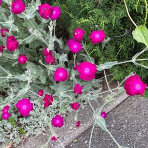葉色や茎がシルバーなので、鮮やかな色のお花とのコントラストが際立つ🌸スイセンノウ🌸のお花です🤗💗 別名 フランネルソウです🤚