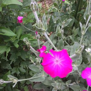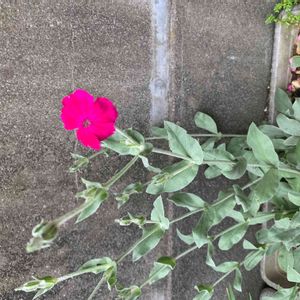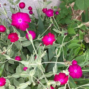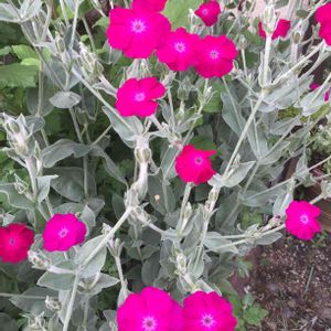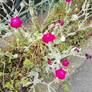 コミュニティ花壇 昨年は咲かなかったスイセンノウ(酔仙翁)が咲きました‼️🤗💕 もっと早くに花茎が伸びていたのに道路際に生えていたため、心ない人に折られてしまいショックだったんですが…その後、折られた茎の両脇から2本の花茎が伸びて来て、ようやく花を咲かせてくれました‼️🥰💕🎶