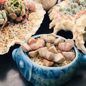 ダラダラと植え替え作業続いてます ズラっといっぺんに並べてやるスペースもないので優先順位高い方?から気ままに(笑) ↖️雨ざらしで元気なチワワエンシス(ルビーブラッシュ)と桃太郎は優先順位低め まだです⸜( ¯⌓¯ )⸝ ↙️ギムノカリキウム 竜頭(もしかすると瑞昌玉)はつぼみがあるので咲いてから植え替えにしようそうしよう ↗️最近手を出したディンテランサス 妖玉 派手派手カラーのプラ鉢に植えてあったのを植え替え ( ˙³˙)もしかして鉢小さいか····· ↘️こちらはラピダリア 魔玉 メセンは色んな属があるのね〜 上手く夏が越せるといいのだけど