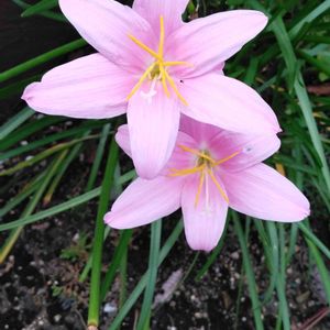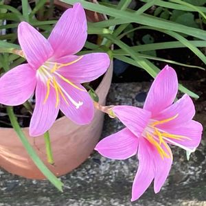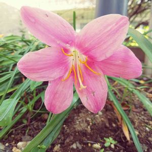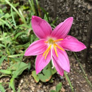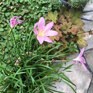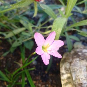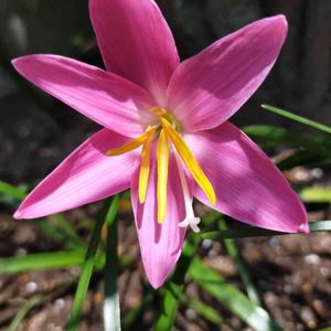 サフランモドキが咲き出しました 濃いピンクのシンプルで綺麗な花です ヒガンバナ科でタマスダレ属の植物 地下に球根を持っているので多年草です 放っておいても毎年咲いて楽しませてくれますね。