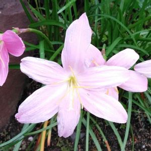 雨あがり‥ニョキニョキ顔出し🌸🌱 さふらんもどき🌱(ゼフィランサス)花びら1枚多いわ🙄