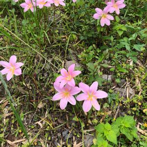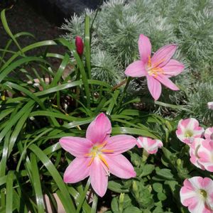 母が紅葉の周りに植えていた花が元気に咲いています。花の名前を忘れてしまいました……誰か教えてください((。´・ω・)。´_ _)) ゼフィランサスにしました((。´・ω・)。´_ _))教えていただきありがとうございました。